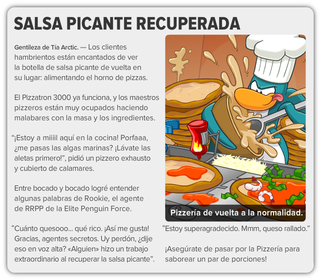 En la Parte central Encontraremos.. "Salsa Picante Recuperada" Pizzaria de Vuelta a la normalidad.
